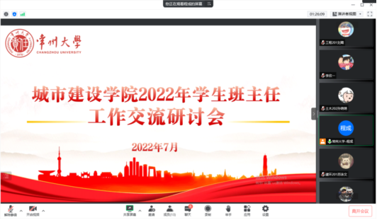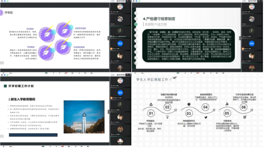 7月30日上午9:40开展了第二期培训,本次培训由辅导员程成主持,参加会议的有ACG盒子 2022级各专业辅导员及学生班主任。由2022级新生学生班主任根据制定的班级学年工作计划进行汇报交流。给水专业学生班主任徐锦辉和苏潇赞表示要在工作的实施过程中及时调整,建设出一个优秀班集体,希望让新生感受到“此生无悔入给水,来生还做常大人”。给水专业辅导员张争对两位的工作计划给予了建议,并希望两位能将计划落实到具体工作中。工程专业学生班主任刘璐和刘硕表示希望以自身之力起到表率作用,带领学生不断进步,以身作则带动专业发展。工程专业辅导员邵丹迪对两位工作计划表示认可,希望两位站在不同的角度思考解决问题,并表示“道阻且长,未来可期”。土木专业学生班主任赵梓汝和孙萌萌介绍了学生班主任的各种身份,为新生能更好、更快地融入大学生活做了充足的准备,使学生对班级有归属感,责任感,荣辱感。土木专业辅导员程成希望各位学生班主任,细致规划工作,做到“顶天立地”,构建更完美的班级。建环专业学生班主任杨如梦和苏泳文从开学前的准备,到对自身和新生的要求,详实细致,考虑全面,切实为新生提供有效的帮助。并表明计划赶不上变化,要依据实际,不断完善。建环专业辅导员李欣一对两位学生班主任的规划进行了点评,希望二位能够制定一定的量化标准,为班级建设添砖加瓦。