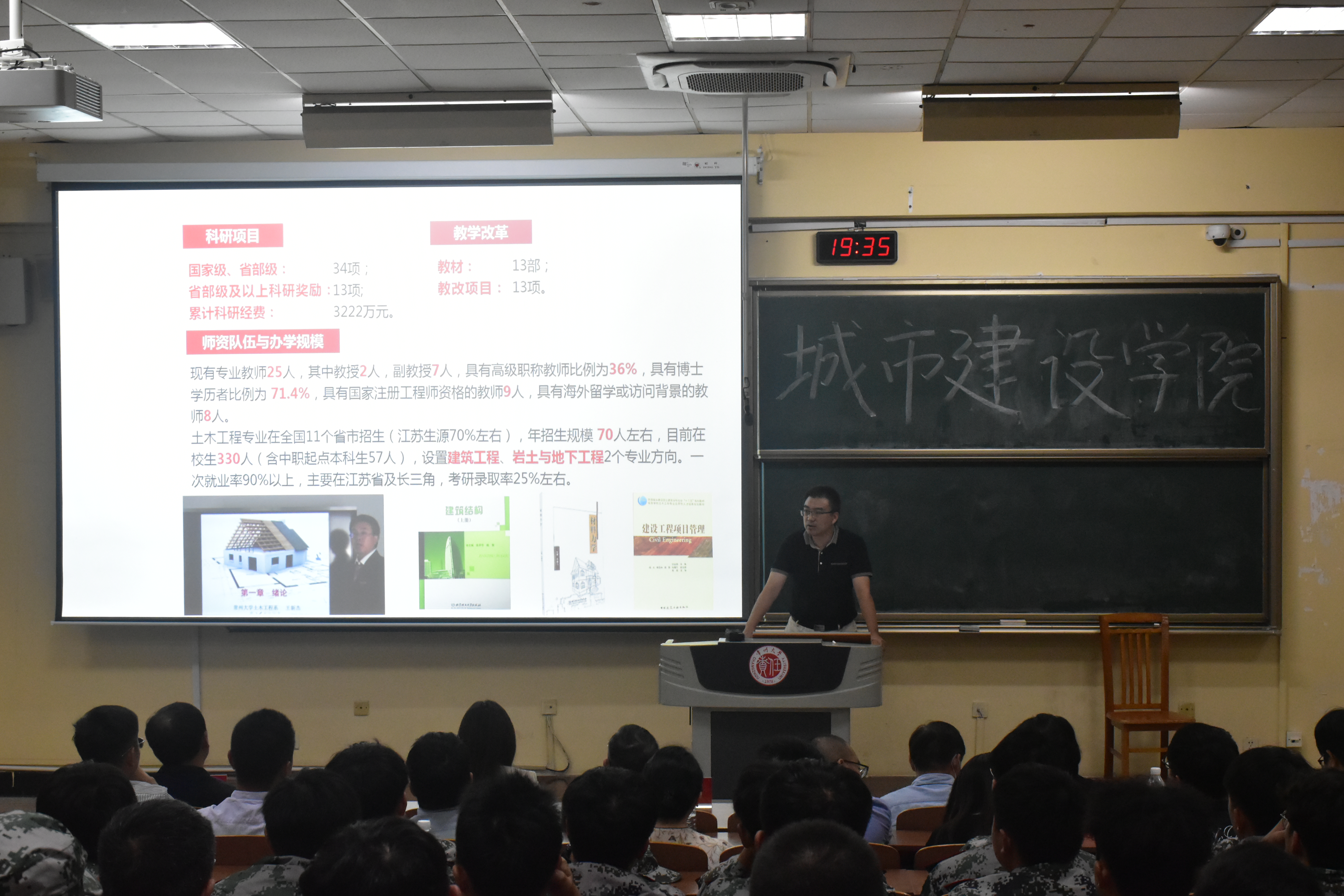 朱平华院长在讲话中说明了他的研究方向,分享了自己的求学经历,参加工作以后的心得体会,指导参加各类比赛的实战经验,他鼓励大家认真学习专业知识,扎实基础,为未来的考研、就业做好准备;接着,土木工程专业的专业教师依次登台进行自我介绍,他们简要阐述了自己的个人履历、教学经历、研究方向、自身优势,并对考大学学习、生活提出了宝贵的建议。他们纷纷表示,希望新生拒绝刻板印象,期待大家进行多元化的发展,专业教师不仅是学业上的导师,更是同学们生活中的朋友,可以为大家排忧解难,亦师亦友,见面会在一段段简短而幽默的话语和一次次热烈的鼓掌声中完美收官。