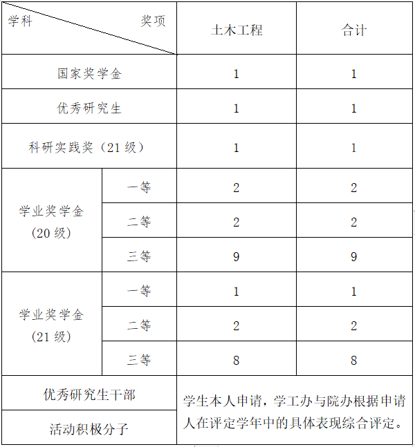 其他奖项均为2020、2021级全日制在籍在学硕士生。