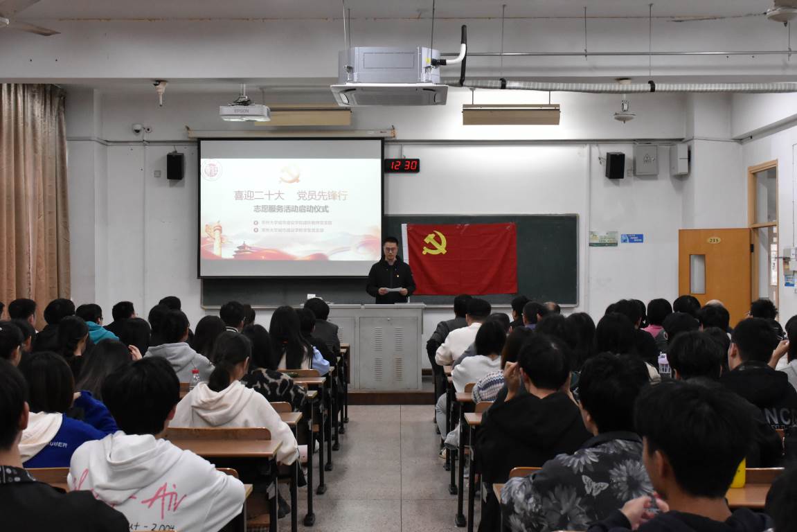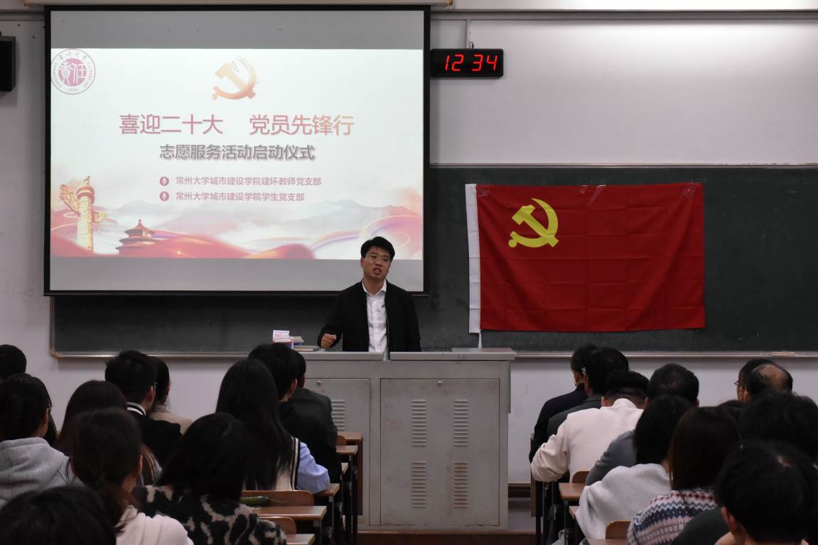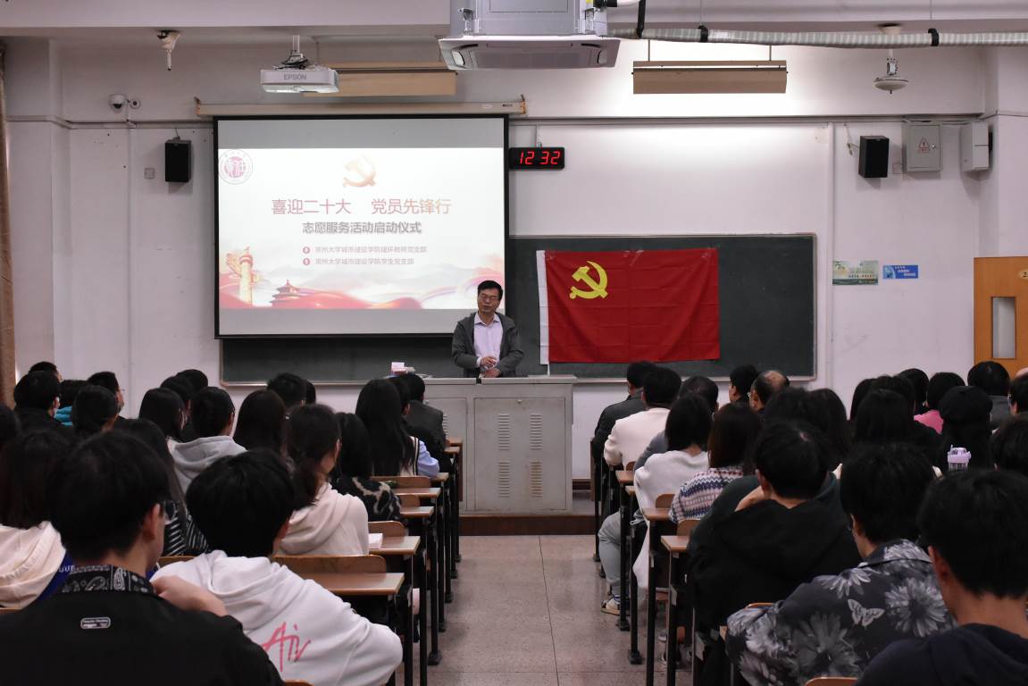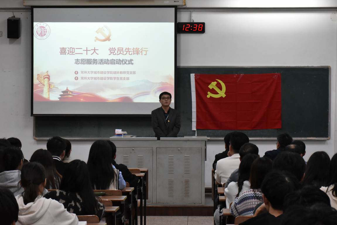 金秋迎盛会,共启新征程。为迎接党的二十大胜利召开,深入弘扬志愿服务精神,教育引导广大师生坚定初心跟党走,建功立业新时代。ACG盒子 特举办以“喜迎二十大,党员先锋行”为主题的志愿活动启动仪式。活动于2022年10月21日在W1213教室举行,由院学生党支部第一支部副书记王发静主持,院党委副书记顾坚,副院长王新杰、许霞,院长助理杜尔登、陈春红、周年勇,建环专业负责人郭强,建环专业教师、教师党支部及学生党支部的全体党员出席活动。