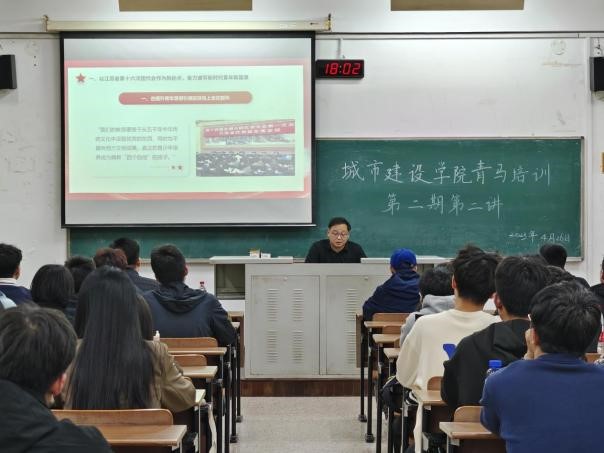 为深入开展学习贯彻习近平新时代中国特色社会主义思想主题教育,进一步加强对青年学生的思想政治引领。ACG盒子 于4月26日晚在W1209开展以“深入学习贯彻党的二十大精神––让青春在火热实践中绽放绚丽之花”的专题报告暨“青马工程”培训班第二期第二讲。本次讲座邀请到校团委书记田轶为主讲人,活动由学院团工作负责人程成老师主持,城建青马工程第二期培训班学员、团干部、入团积极分子到场参加讲座。