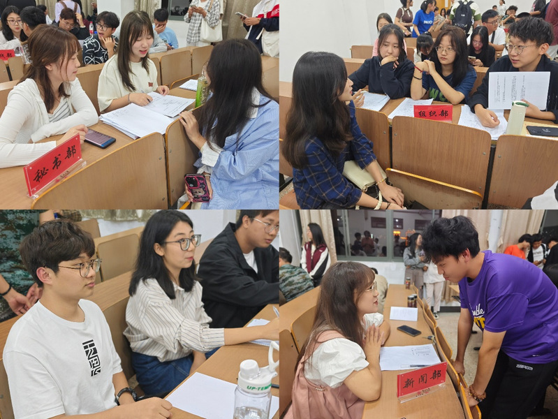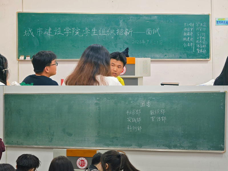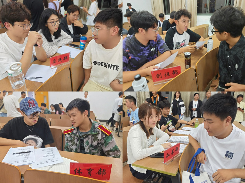 为进一步加强学院学生组织队伍建设,给新生打造一个扩大视野、提升自我的优质平台。2023年9月21日晚,学院团委、学生会、新媒体中心等组织分别在W1501、W1502教室开展2023级新生招新面试工作。由各部门负责人担任面试官,团工作负责人程成及学生组织主席团成员参与指导。
