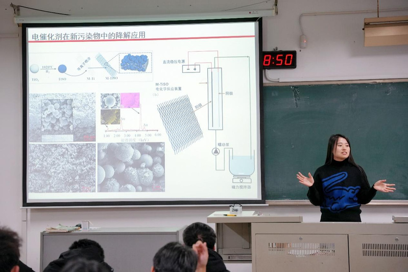 讲座开始,滕洁老师围绕“水中魔法师,纳米催化剂的奇迹”这一主题引出给排水专业的历史背景,讲述了本专业在城市规划中的意义与作用,重点介绍了污水处理流程。滕洁老师还将催化剂比做“魔术师”,以通俗易懂的语言让学生认识到给排水专业的社会意义。随后,滕洁老师为学生们详细解说了给排水科学与工程专业的专业特色、人才培养、发展前景、职业规划等内容。最后,滕洁老师给予同学们暖心寄语并提出殷切期望,在同学们热烈的掌声中本次讲座圆满结束。