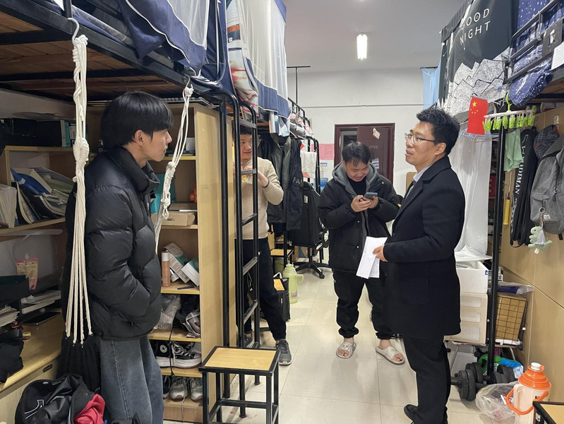 走访宿舍过程中,学院领导和老师们细心询问了同学们的假期生活、新学期规划、心理适应、宿舍卫生等情况,特别强调人身财物安全及宿舍消防、安全用电的重要性。同时,耐心倾听同学们的心声和诉求,并对提出的问题给予详尽解答。学生们对老师们的来访倍感兴奋,热情地向老师们介绍了宿舍的布置与新学期的感受,表示会牢记老师们的教诲和嘱托,以更积极、热情的态度迎接人生新阶段、新征程。