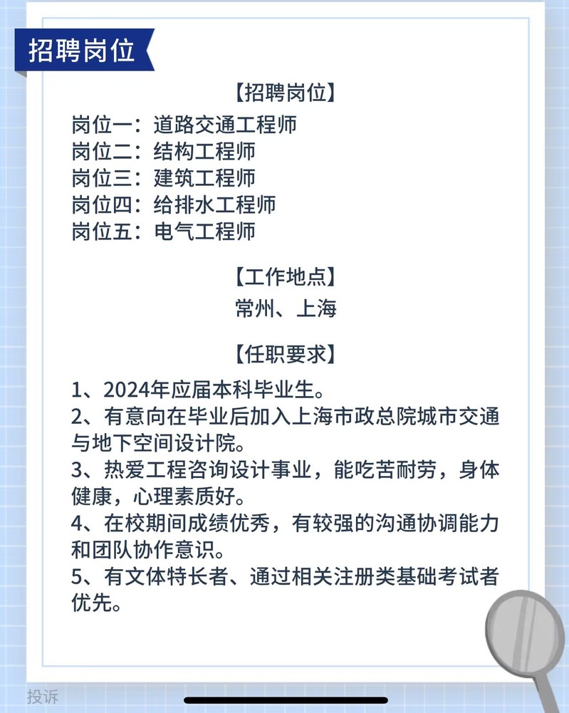 招聘[2024084]上海市政工程设计研究总院(集团)有限公司2024校园招聘