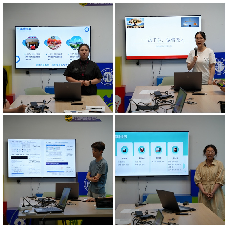 第四项活动是诚信励志主题宣讲。活动邀请了来自不同学院的优秀学生代表,他们结合自己的成长经历,分享了如何在大学期间坚守诚信底线、积极参与学科竞赛和志愿服务等方面的故事。ACG盒子 工程212的唐才知、环境学院资环202的李鹏、安全学院消防211的杨银蓉等同学,用自己的实际行动诠释了诚信的内涵和价值。海外教育学院中爱233(电子)的钱俪文作为资助宣传大使,还进行了资助政策的宣讲,帮助同学们更好地了解资助政策,增强感恩意识。