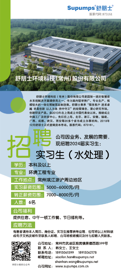 招聘[2024179]舒朋士环境科技(常州)股份有限公司2025届校招
