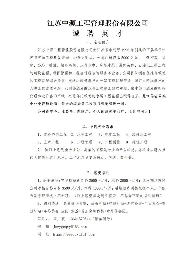 招聘[2024181]江苏中源工程管理股份有限公司2025校园招聘