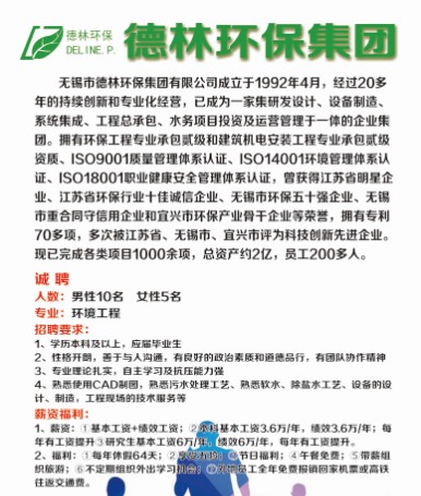 招聘[2024182]无锡市德林环保集团有限公司2025校园招聘