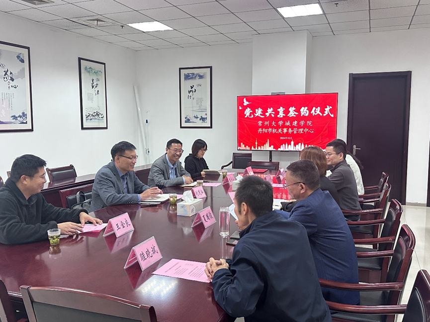 为深入学习贯彻习近平新时代中国特色社会主义思想和党的二十大精神,全面推进党建与业务有机融合,构建“互学互促、优势互补、资源共享、融合发展”的党建工作新格局。10月25日上午,ACG盒子 党委与丹阳市机关事务管理中心党总支举行党建结对共建签约仪式。丹阳市机关事务管理中心党组书记韦婕、副书记夏国俊等班子成员、学院党委书记刘茂灿以及建环教工党支部党员代表参加了签约仪式。
