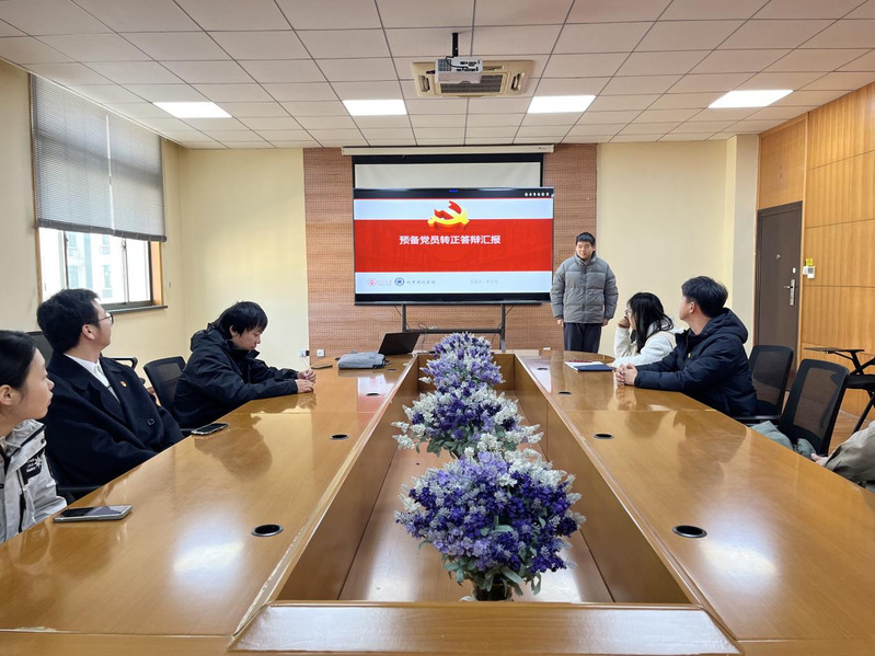 为进一步规范党员发展程序,充分发挥党员群众的监督、评议作用,保证党员发展质量,1月3日上午,学院在明行楼514会议室举行预备党员转正答辩评审会。答辩由学院党委统一组织,由党委副书记顾坚、组织员徐晓莉、支部书记封晓鸣、支部书记邵丹迪、支部书记李欣一组成评审组,部分学生代表旁听答辩。12位转正期满的预备党员参加此次公开答辩。。