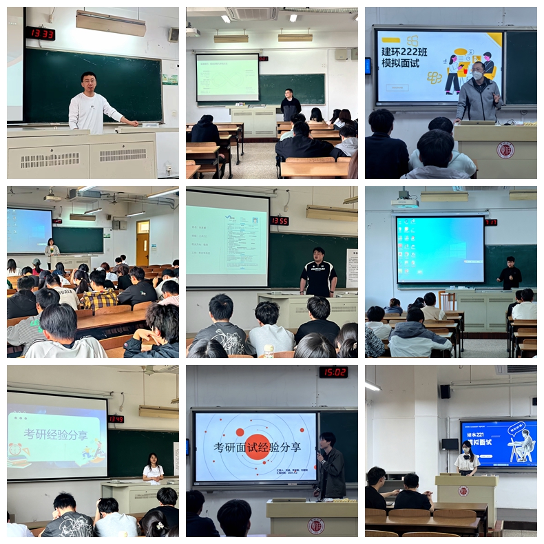 23级9个班级本月主题班会,各班会邀请到班主任郭翔、刘会东、赵文星等老师和辅导员李欣一参加。班会围绕“深化专业认识、学术规范教育、考研经验分享”主题展开。首先,辅导员李欣一结合学院2025届考研录取结果,向各专业同学分析了土木类专业的未来发展方向,并邀请建环211邹蕊(东南大学拟录取)、土木212 苏锐(中国海洋大学拟录取)、给水211曹亮亮(兰州大学拟录取)、工程212徐佳斌(南昌大学拟录取)等12位学长学姐进行现场考研经验分享和大学生涯规划。接着,各班班主任以近期AI工具侵袭学术场等案例,强调了学术规范,并对《生涯规划手册》和《导师制手册》提供了指导意见。