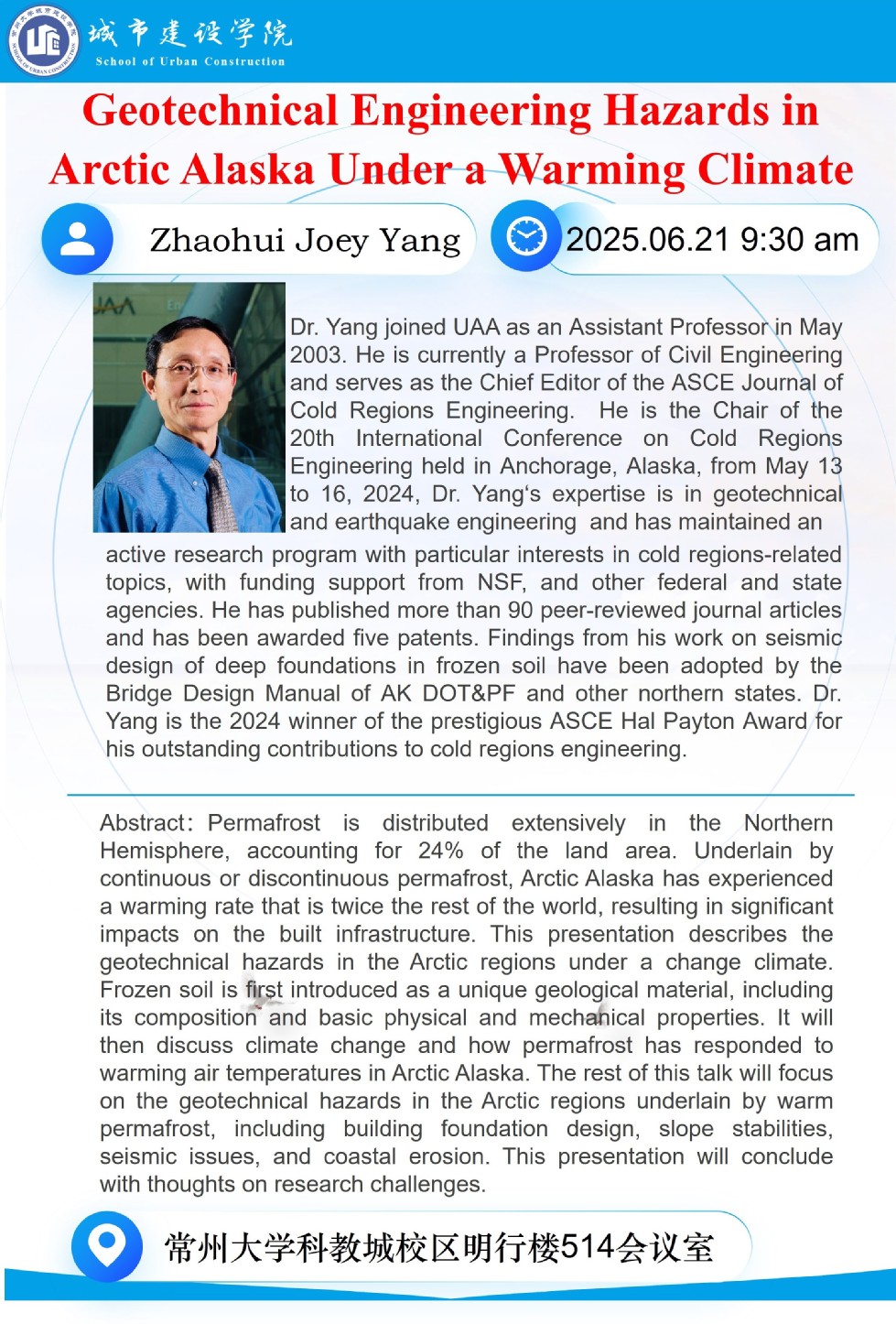 美国阿拉斯加大学安克雷奇分校土木工程系杨朝辉教授报告会