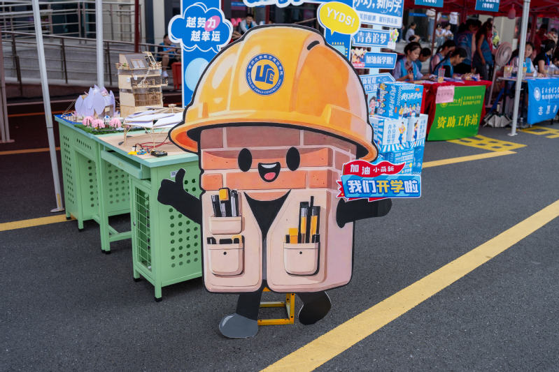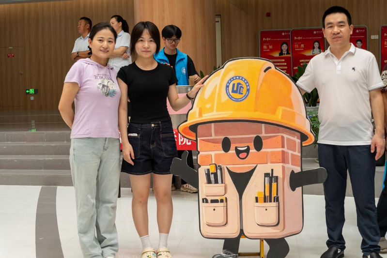 今年的新生大礼包诚意满满,学院精心定制2025级入学纪念徽章配套“城宝”卡套和钥匙扣解锁了“城宝”们大学生活的第一份仪式感。在报到处,学院还设计了“你好 新同学”的立体打卡,新生与家长笑意盈盈定格入学瞬间;那个头戴工程安全帽、憨态可掬的“砖块”卡通形象立牌旁,不少新生驻足合影,让“城建特色”成为初入校园的记忆符号。
