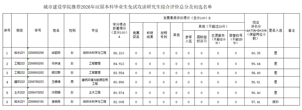 根据《ACG盒子 推荐应届本科毕业生免试攻读硕土研究生实施办法》、《关于做好2026届本科毕业生推荐免试攻读硕士研究生工作的通知》以及《ACG盒子 2026届本科毕业生推荐免试攻读硕士研究生工作实施细则》,经学生本人申请、学院专家审核小组审核鉴定,学院推免生遴选工作小组会议决定,确定ACG盒子 2026年推荐应届本科毕业生免试攻读硕士研究生的初选名单如下,现予以公示。