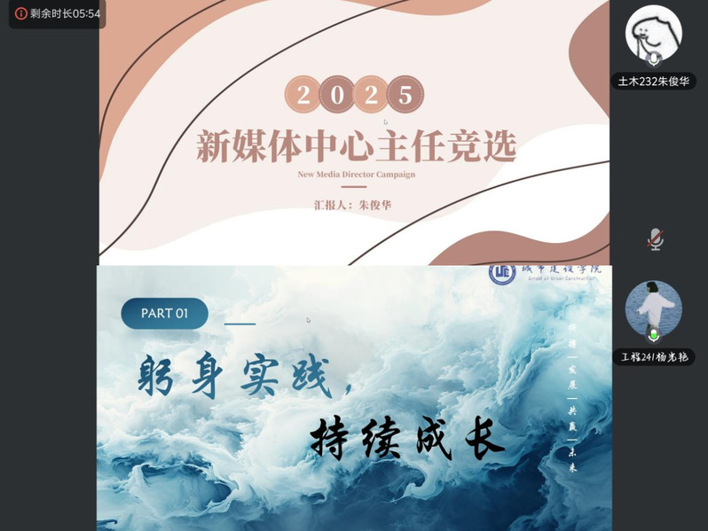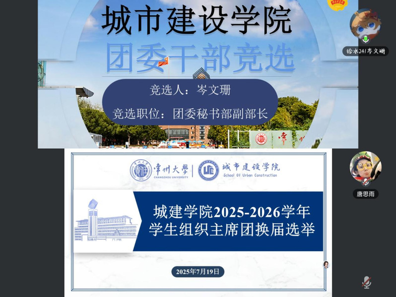 “竞选不是终点,而是服务的起点。”此次线上换届竞选,不仅为学院学生组织注入了新鲜血液,更充分展现了城建学子在各自领域发光发热、锐意进取的精神风貌。未来,新一届学生干部将带着这份宝贵的初心与使命,团结协作,砥砺前行,为打造更具凝聚力、执行力、创新力,积极服务广大同学的优秀学生组织而不懈努力。
