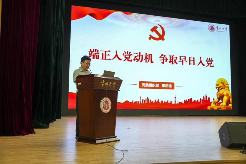 讲座伊始,陈启迪围绕“正确认识中国共产党”,详细介绍了党的性质纪律、最高理想以及根本宗旨等内容,帮助新生构建对党的初步认知体系。随后,陈启迪深入阐释了正确入党动机的内涵,引导新生树立为人民服务、为共产主义事业奋斗终身的信念。同时强调,同学们需要“端正入党动机,争取早日入党”,加强理论学习,积极向党组织靠拢。讲座最后,陈启迪系统展示了入党程序,对入党要求、入党申请书撰写规范及思想汇报写作要点等进行了细致说明。