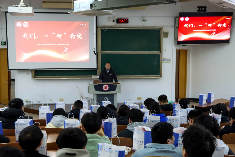 为鼓舞2022级考研学子备考士气,缓解备考压力,传递学院关怀,12月3日下午,学院于W16阶教室举办“我们一‘研’为定”考研慰问活动。学院党委书记刘茂灿、党委副书记顾坚及全体辅导员出席,2022级辅导员邵丹迪主持活动。